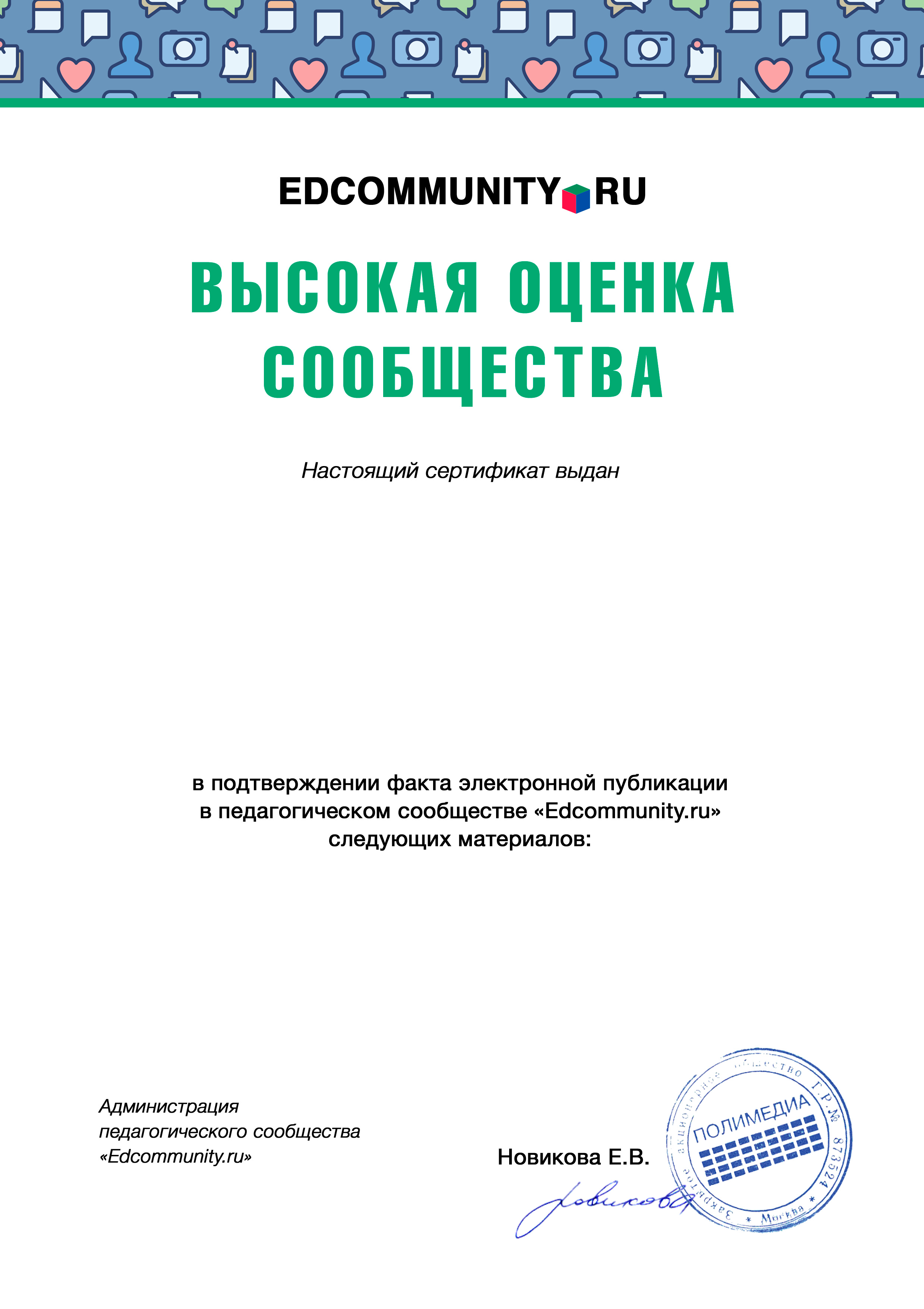 Сертификат EDCOMMUNITY.RU