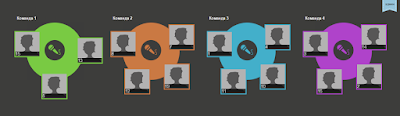 На уроке. Разделились на группы с помощью сервиса поделились на команды по цветам: желтый, синий, зеленый, фиолетовый.