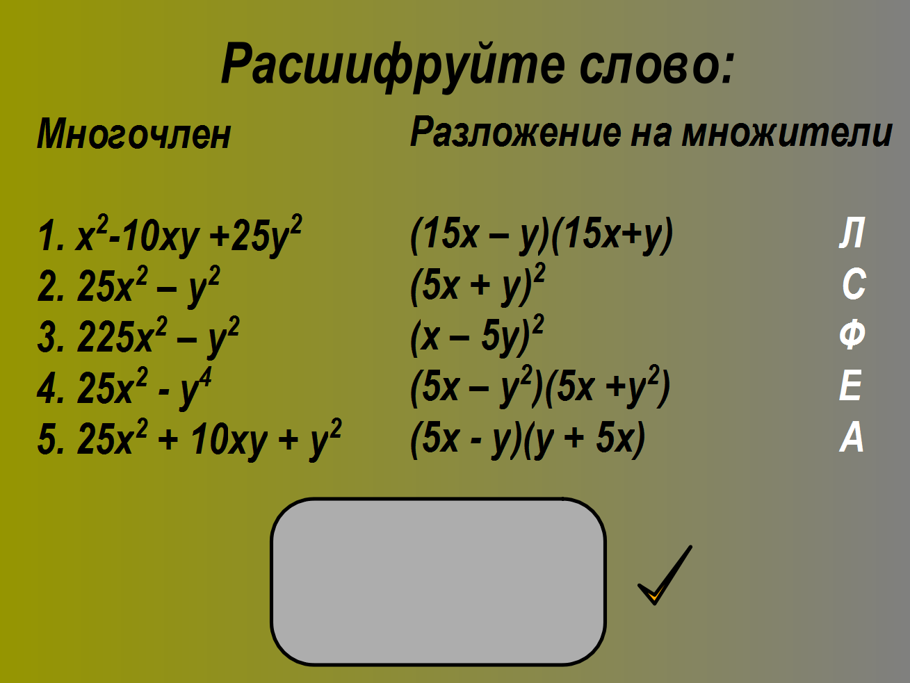 Формулы сокращенного умножения