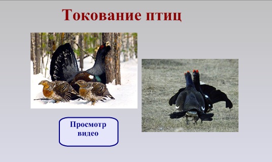 Цель – организовать работу учащихся по изучению годового жизненного цикла и сезонных явлений в жизни птиц. Жизнь птиц осуществляется ритмически и это связанно с изменениями условий существования, обмена веществ и имеет важное приспособительное значение. Разнообразные формы работы с учащимися. Просмотр видеороликов.