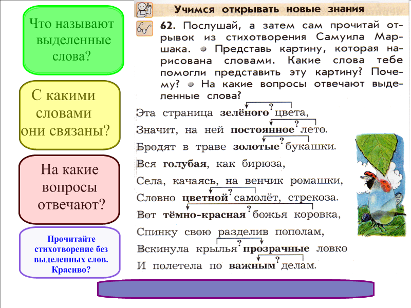 Наблюдение над словами-признаками. Развитие умения ставить к ним вопросы.